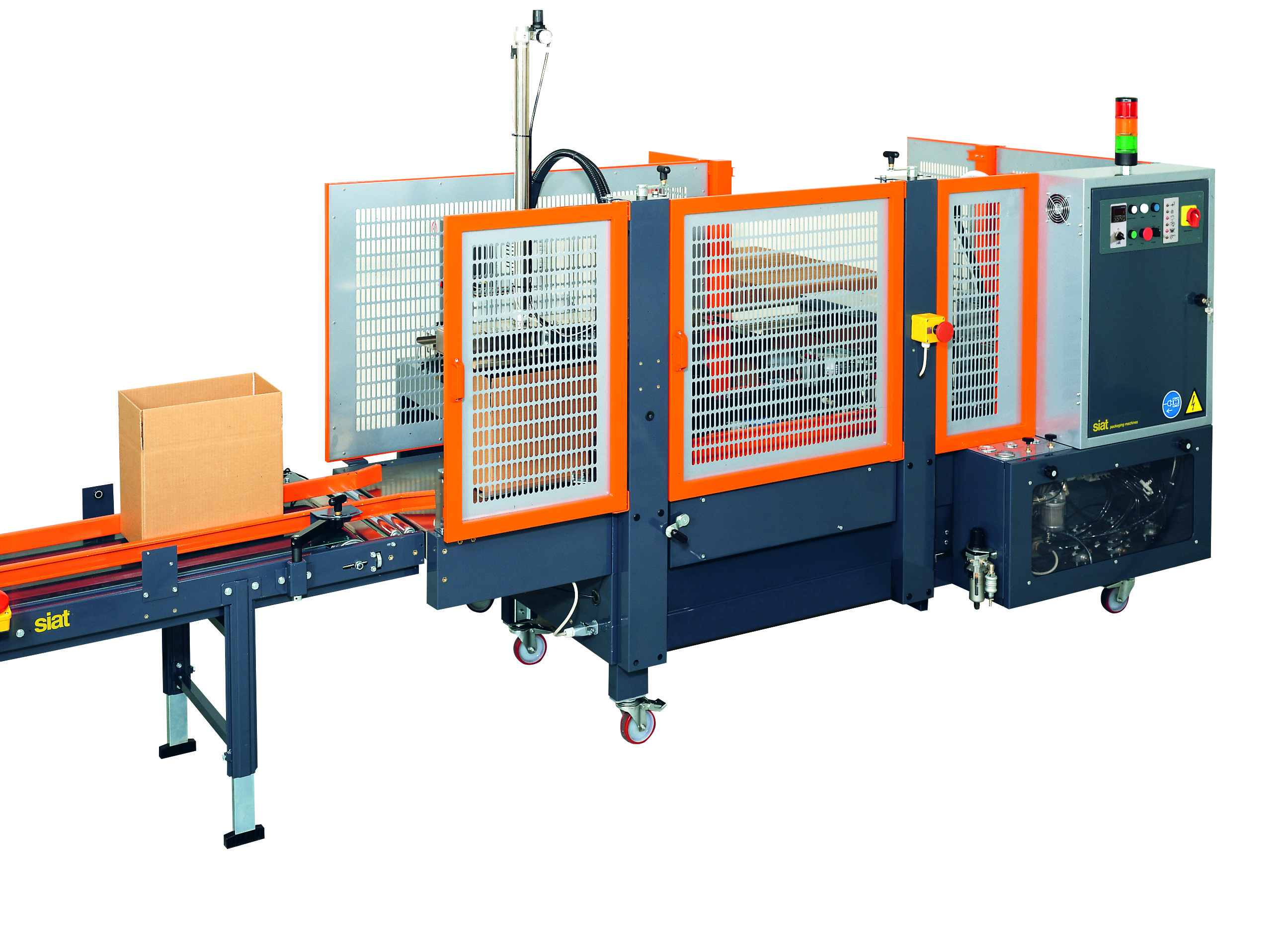 Jediný účel - zalepování kartonových krabic - má tato skupina strojů. Stroje na zalepování krabic patří k balicím strojům s nejrychlejší návratností investice. Tyto stroje krabici automaticky uzavřou a zalepí a velice často jsou zakomponovány do balicích linek.