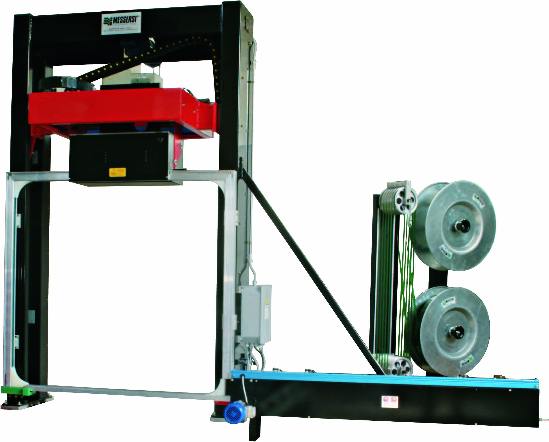 Programovatelný robustní páskovací stroj pro svislé páskování palet s možností nestandardních (zakázkových) modifikací.